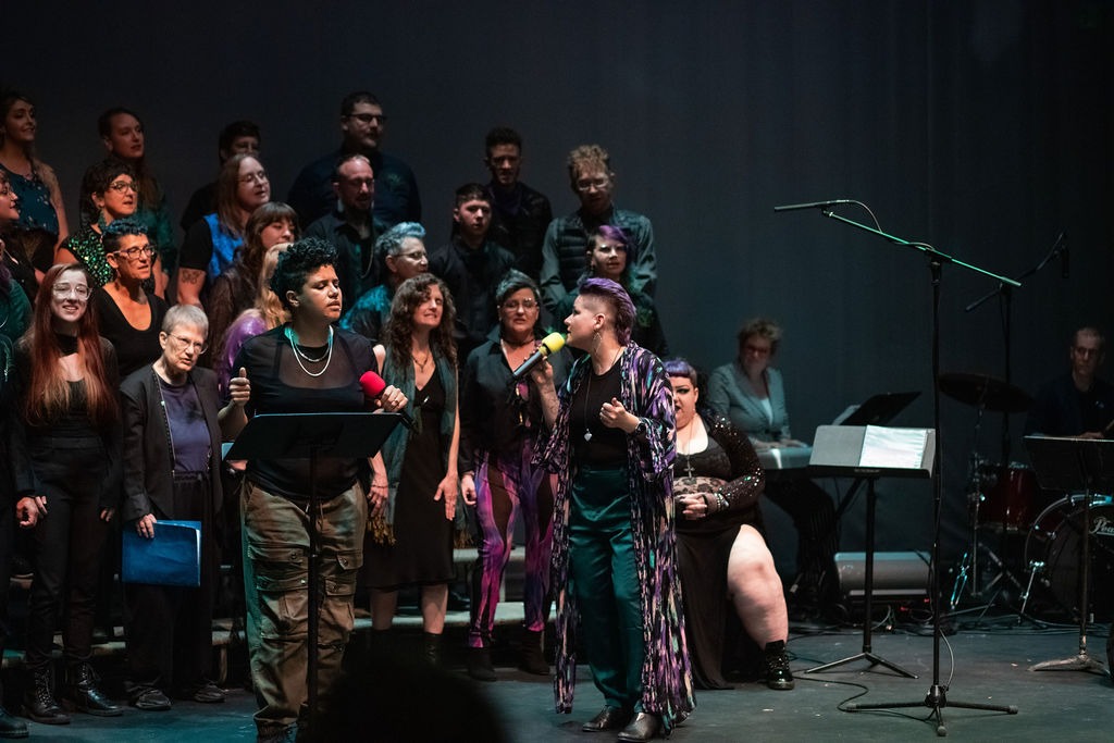 We are queering (v.) what it means to be in a community choir – We embody non-duality, multiplicity, and paradox. Our container can hold contradiction and complexity without false unity.
