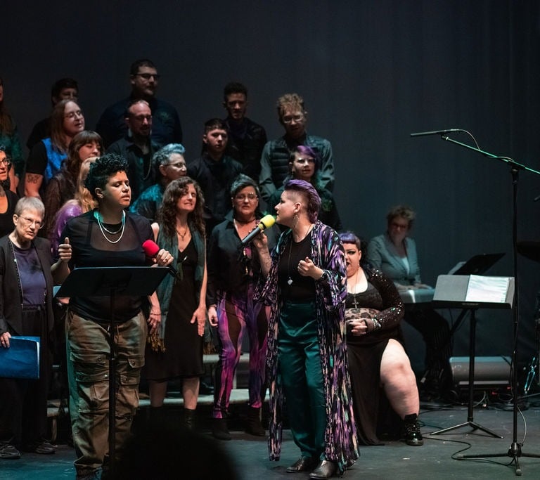 We are a choir made up of queers (n.) – We belong to a larger constellation and lineage of outsiders, disruptors, and reinventors. Our identities resist conformity and contain fluidity, ambiguity, and becoming. No one must prove or label their queerness.