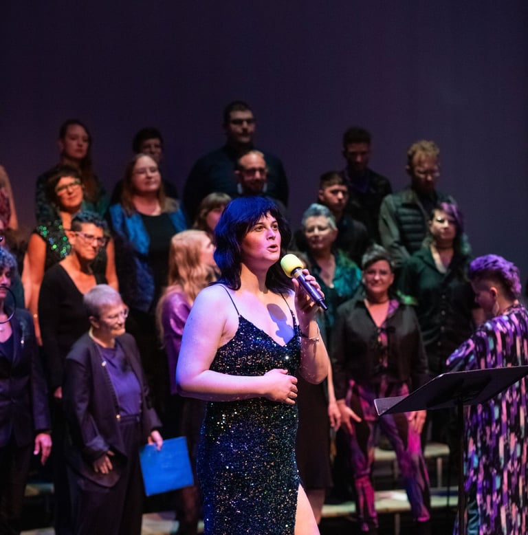 We are a choir that is inherently queer (adj) in who we are, what we sing and how we show up – Our repertoire, relational ethic, pedagogy, and politics embody queerness. We use non-gendered voicing and non-canonical repertoire. We practice reciprocity over obligation, mutual care over martyrdom, and relational boundaries as clarity—not punishment.